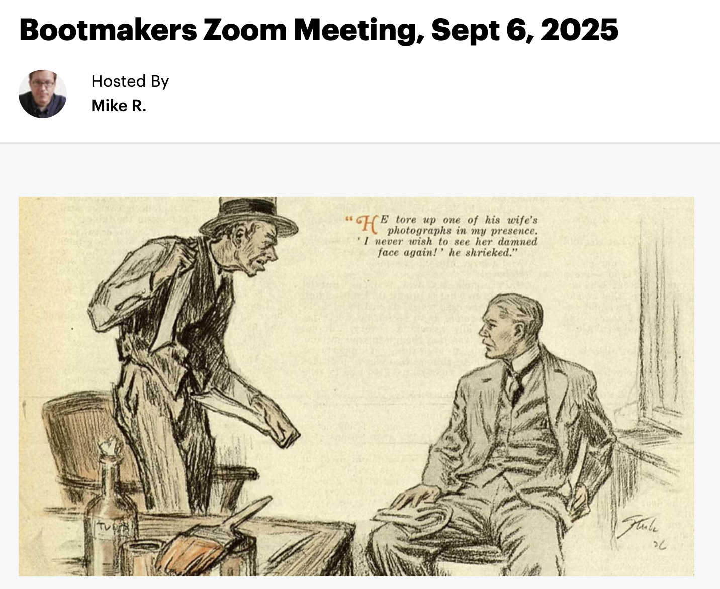 Bootmakers Zoom Meeting, Sept 6, 2025, Sat, Sep 6, 2025, 12:30 PM | Meetup