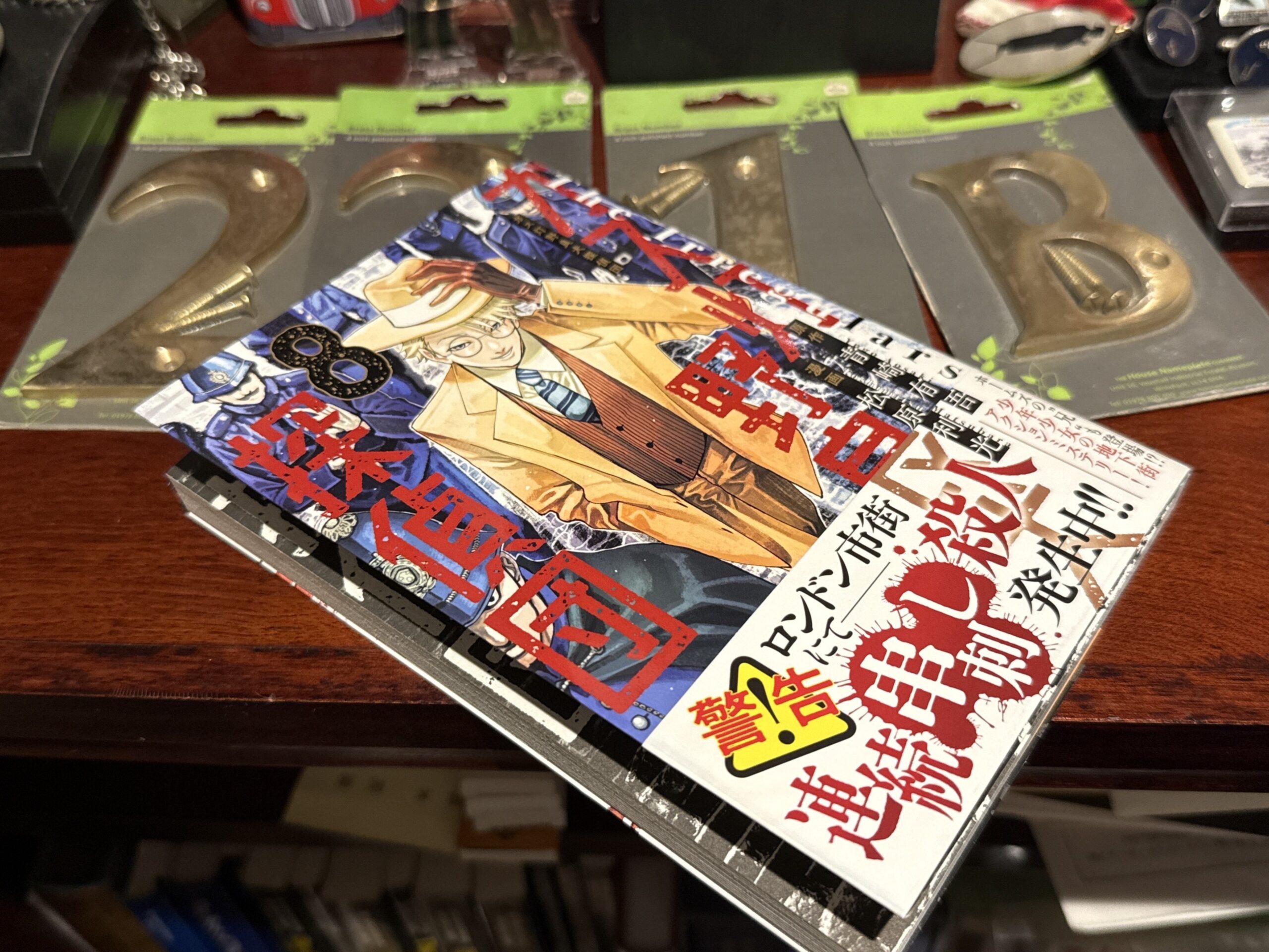 正典のキャラではありませんが、8巻で面白かったのは挿絵画家のシドニー・パジェットが登場し、ディアストーカーとインバネス姿が生まれた瞬間が描かれたことや、バリツ(正典ホームズが身につけていた格闘術)という名前の人物の登場がほのめかされていること。まだ本格的には登場していないので、今後が楽しみになります。