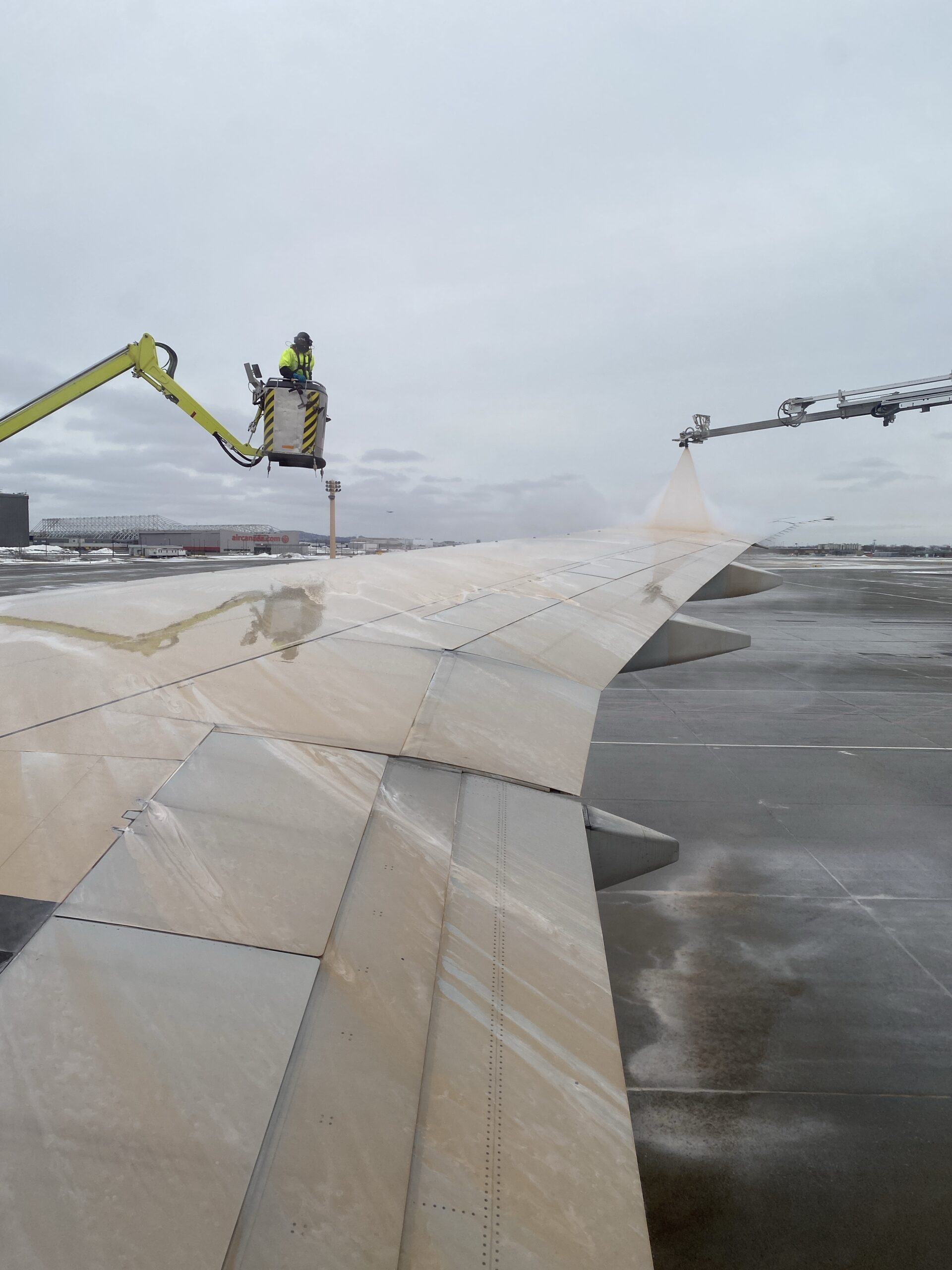 冒頭の写真は今年1月のエアカナダの機体。翼に氷が着いて落とす時間が必要で出発が遅れました。