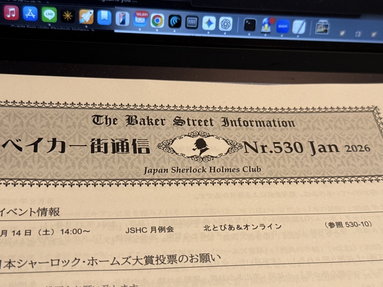 日本シャーロック・ホームズ・クラブの会誌である「ベイカー街通信」が今週になって二回目の送信がありました。