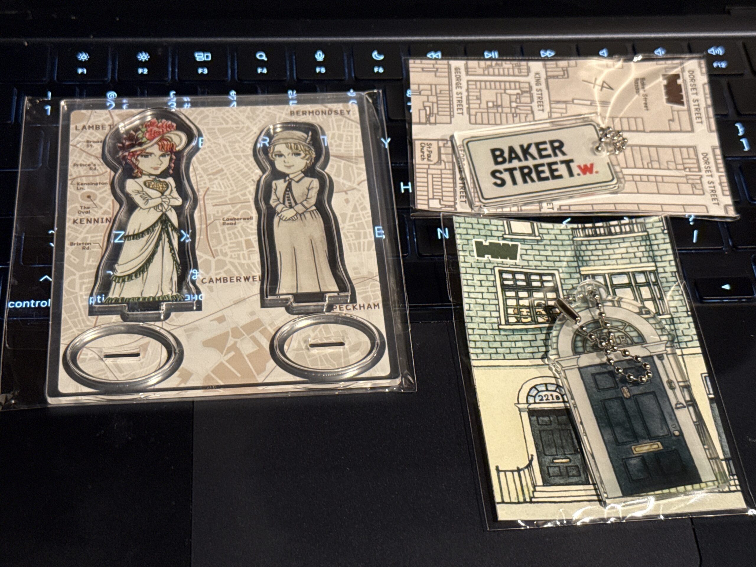 現時点で発売されているのは、ホームズ&ワトソン、モリアーティ&マイクロフト、ハドソン夫人&トピー、そして今回のアイリーン&メアリーとなります。(実はJSHCの大会の記念品で、幻のホームズ&ワトソンというのもあり、手元には5セットのアクリルフィギュアが勢揃いしています。)